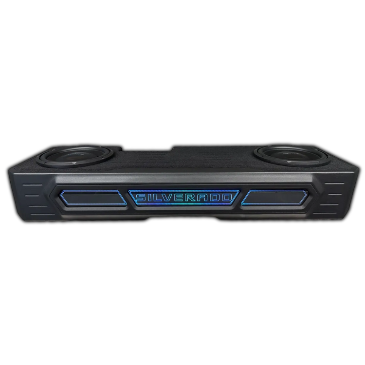 Engineered to fit under the rear seat of most crew cab trucks, this package delivers rich low-end response with minimal space loss and zero factory integration headaches. It’s loud. It’s clean. And it’s built to last.
