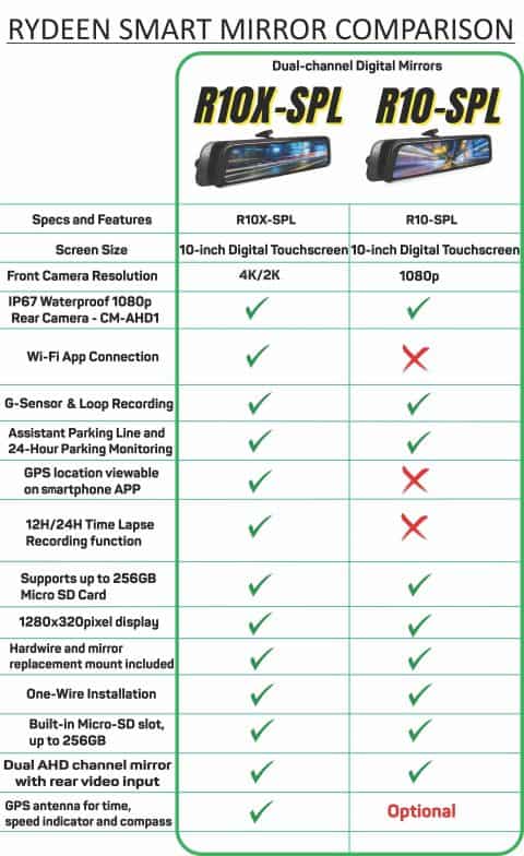 Rydeen R10-SPL Rearview Mirror Dash Camera